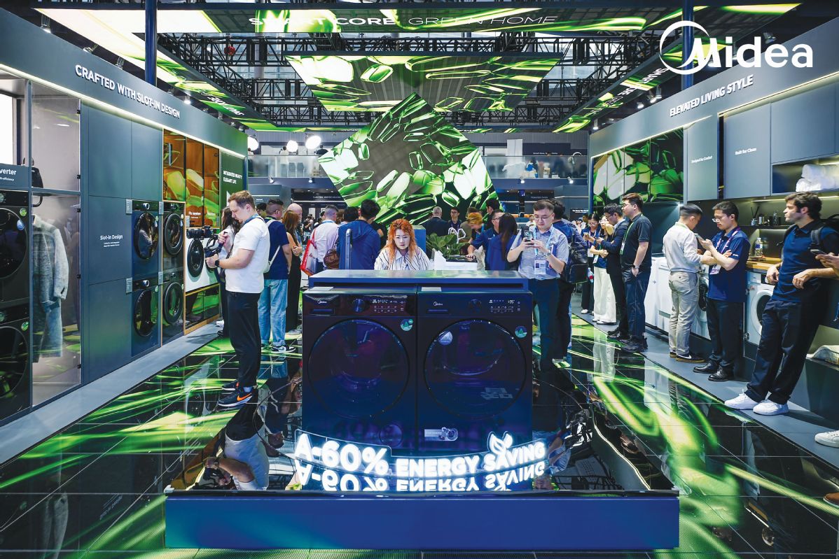 Посетителите проверяват продуктите на Midea по-рано този месец на Canton Fair в южнокитайския град Гуанджоу. [Photo provided to China Daily]