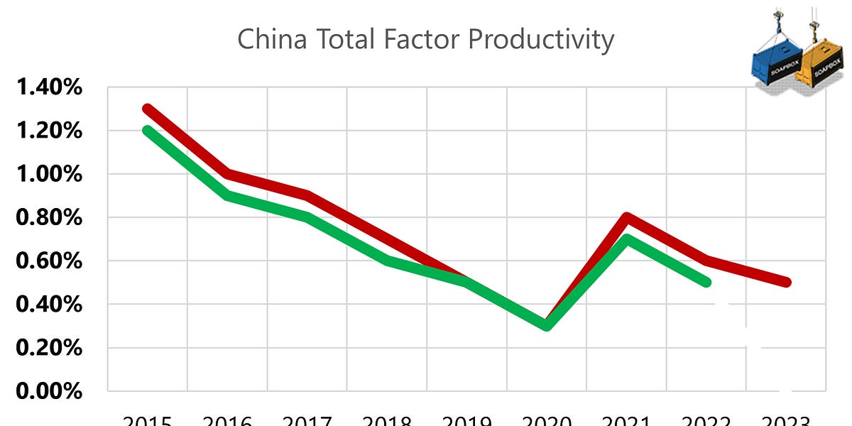 Погледнете таблото, данните показват, че догонването на китайската производителност рязко се забави. През 2010 г. разликата с САЩ се стеснява с приблизително пет процентни пункта, след 30-точков скок през предходните две десетилетия. Бумът след заключването през 2023 г. избледня, 2024 г. се подчинява и днес нищо не сигнализира за връщане към бързо конвергенция. Виномите са познати: капиталът се изсипа там, където възвръщаемостта е тънка и стимули тъпо преразпределение към фирми и сектори с по-висока производителност.