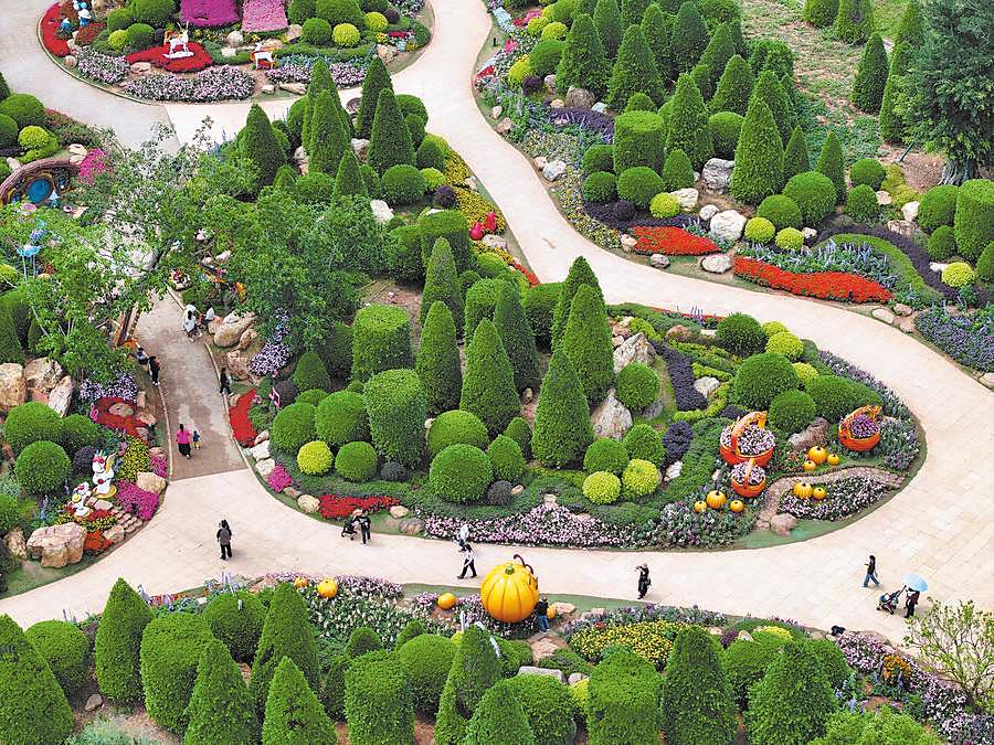 Снимка от въздуха показва туристи, посещаващи живописен район в Нанинг, автономната област Гуанси Джуанг, на 23 март. YU XIANGQUAN/ЗА КИТАЙ ДАЙЛИ