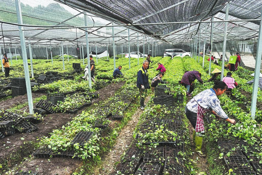 Земеделските стопани се грижат за безплодник, отглеждан в оранжерия в окръг Jiangkou, провинция Guizhou. LIU BOQIAN/КИТАЙ ДЕЙЛИ