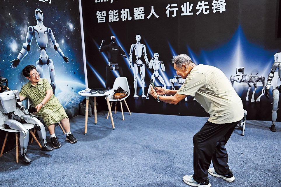 Посетител се снима с хуманоиден робот от Unitree Robotics по време на шестото Китайско международно изложение за потребителски продукти в Хайкоу, провинция Хайнан, на 17 април. YUAN JINGZHI/ЗА КИТАЙ ДАЙЛИ