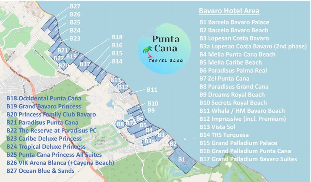 – a Punta Cana resort map designed by Punta Cana Travel Blog with all the exact locations of the hotels 2026