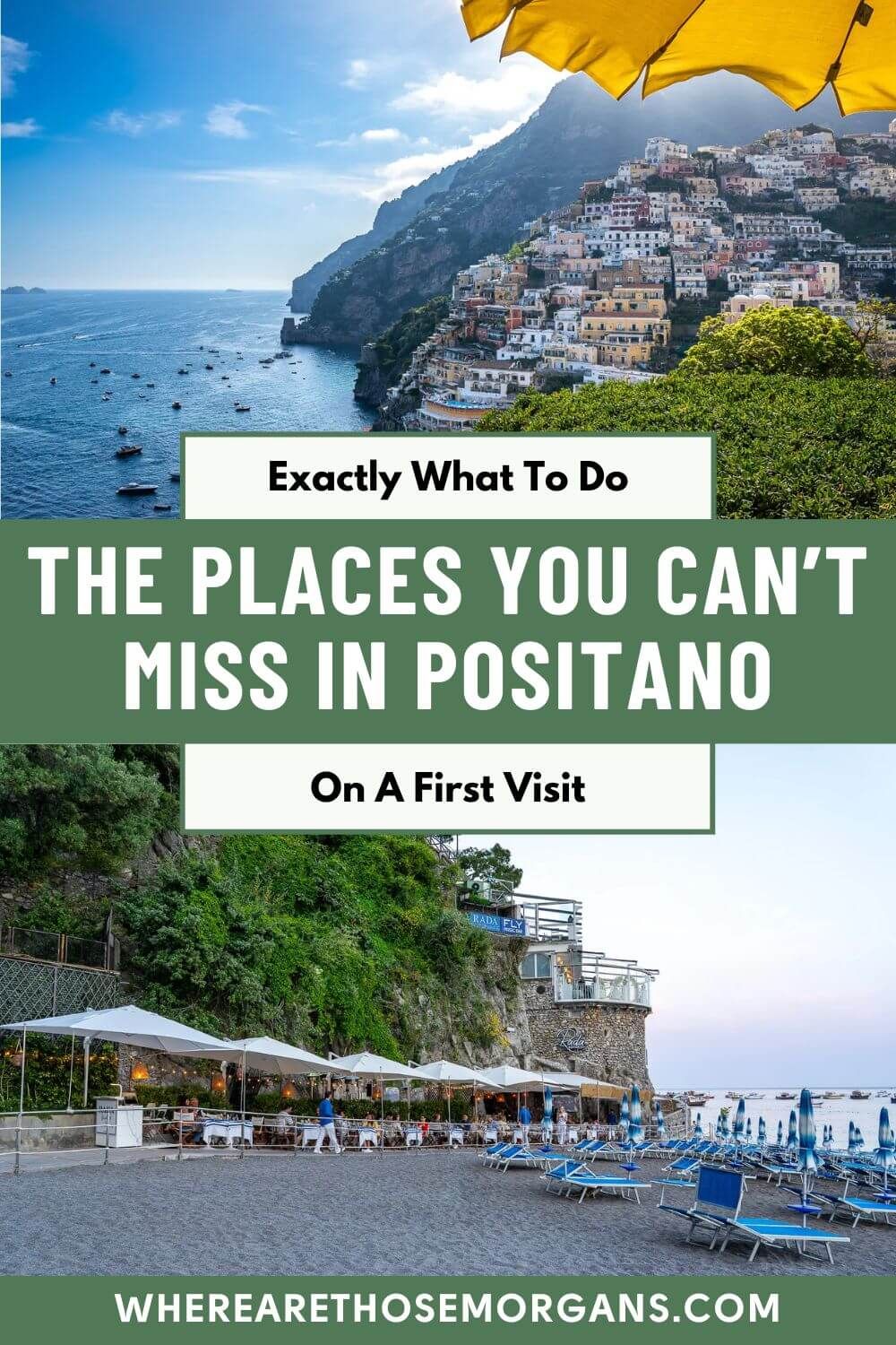 Tip: One thing we would consider doing for a splurge on a honeymoon to Positano is skip the two main beaches and instead go to the exclusive and private Arienzo Beach Club. It costs a lot more money (hundreds of euros) but it looks like a real premium experience.