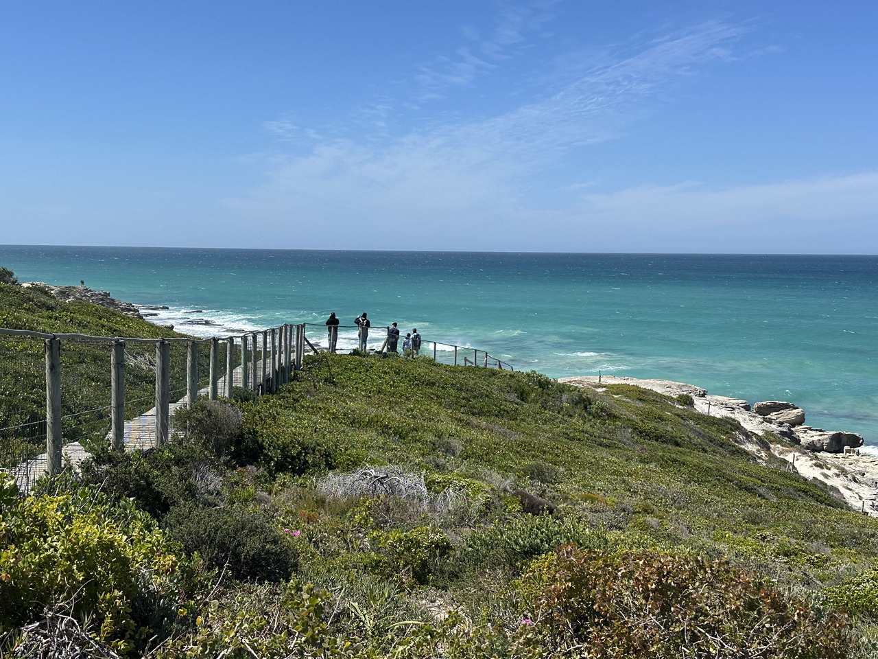 Our 3.7km loop walk took us along the dramatic coastline, past the famed Hippo Pools and across secluded beaches. Corne pointed out why this specific stretch of coast is one of the most important land-based whale-watching spots in the world. The De Hoop Nature Reserve is one of the largest marine protected areas in Africa — extending five kilometers out to sea. This creates a safe, warm, and sheltered bay, the perfect nursery for Southern Right Whales to give birth and raise their calves.