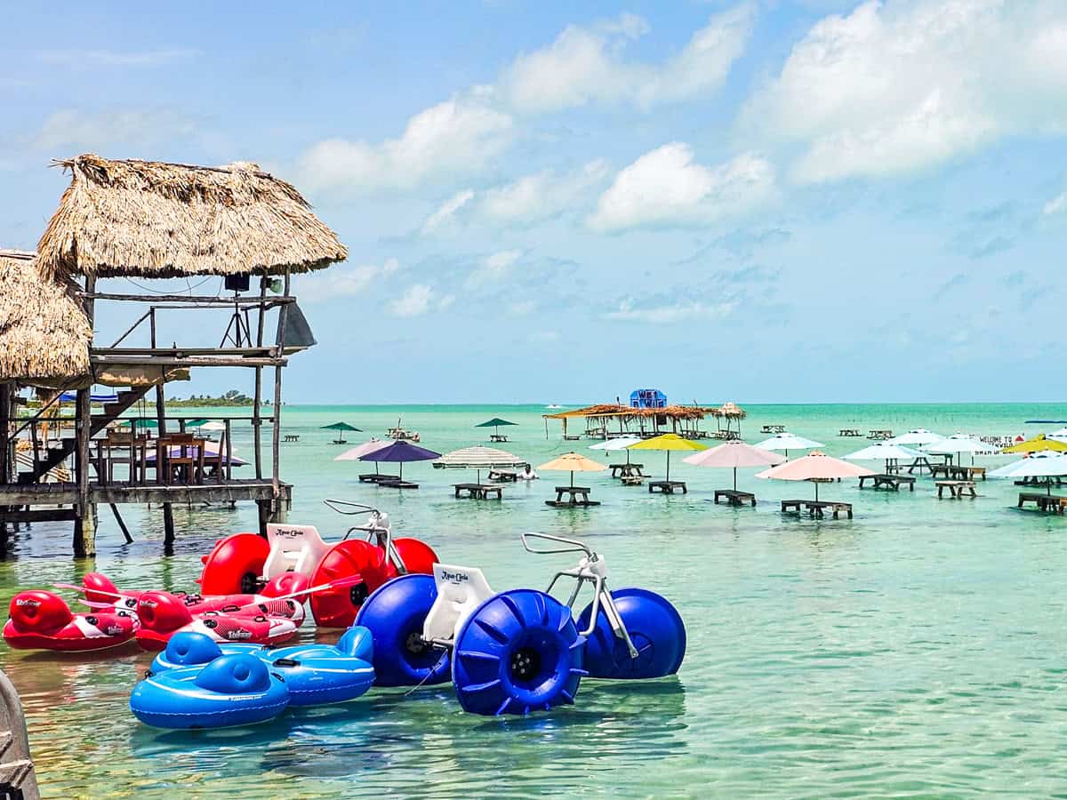 Those traveling with children may want to take them to Secret Beach Waterpark, the first floating adventure waterpark in Belize. It has a 9,000 square feet inflatable obstacle course with slides, places to climb, swing, and jump in the ocean. The waterpark holds space for up to 60 people! You do have to pay a fee to use the waterpark. I heard it was $40USD but do your due diligence as prices change. You can also rent jet skis and stand-up paddle boards from there.