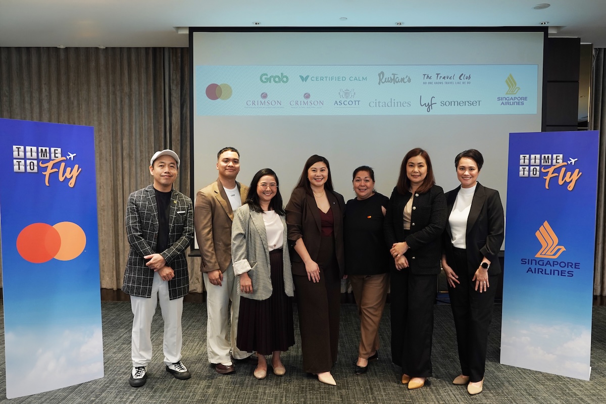 (From left to right) Loven Ramos, Director of Marketing of The Ascott Limited; Lance Bermejo, Assistant Marketing Manager of Ascott Philippines; Sheena Valencia, Marketing Manager of The Travel Club; Aiza Garcia, Head of Marketing and PR of Singapore Airlines; Judith Dayrit, Vice President of Mastercard Philippines; Ronie Reyes, Director of Marketing and Communications of Crimson Hotel Filinvest City; and Ria San Juan-Gumaru, Director of Sales of Crimson Hotels come together to unlock unforgettable experiences for Filipinos through the Time To Fly Virtual Travel Fair 2025.